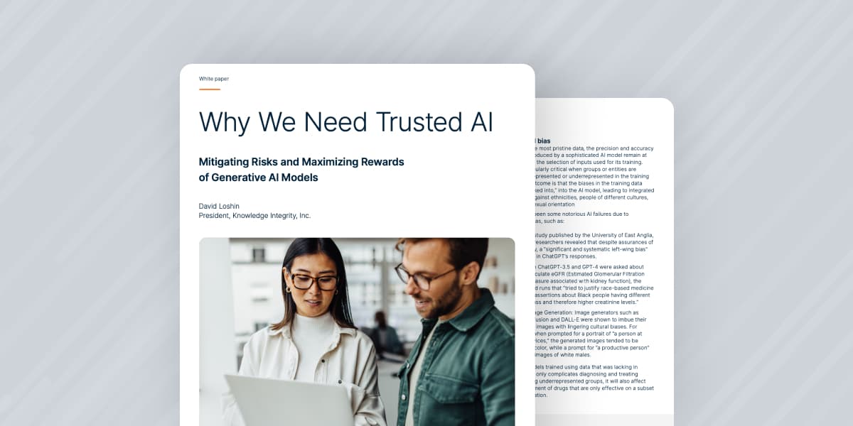 As generative AI continues to evolve, businesses are piloting new ways to deliver value. However, decision makers also face growing concerns around data bias, automation errors, and security risks. In this white paper, David Loshin, a recognized expert in AI and data strategy and president of Knowledge Integrity, Inc., explores the importance of Trusted AI in addressing these challenges.